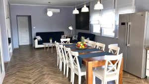 The newly built, fully furbished building meets all the demands of our guests: it has 4 separate double bedrooms, 2 bathrooms – one of which is fully accessible for disabled persons -, a fully equipped kitchen, a spacious dining room and comfortable living room.